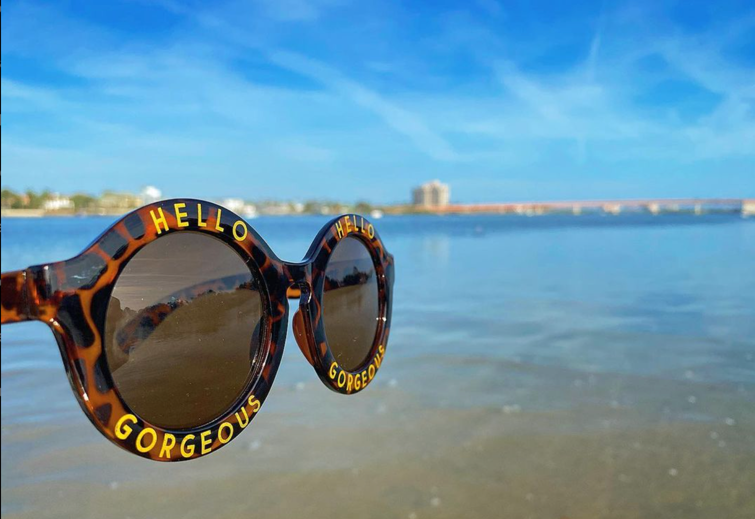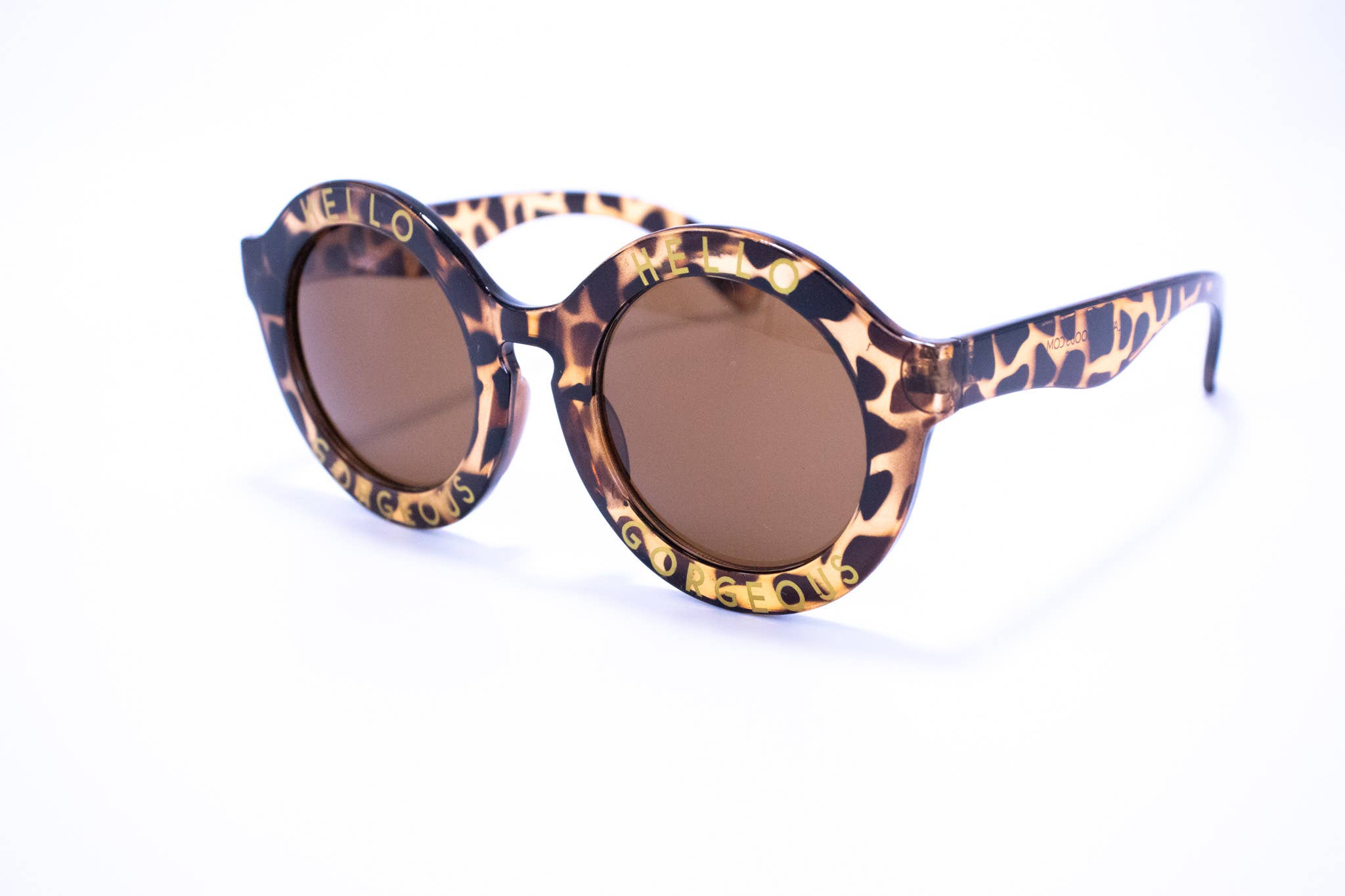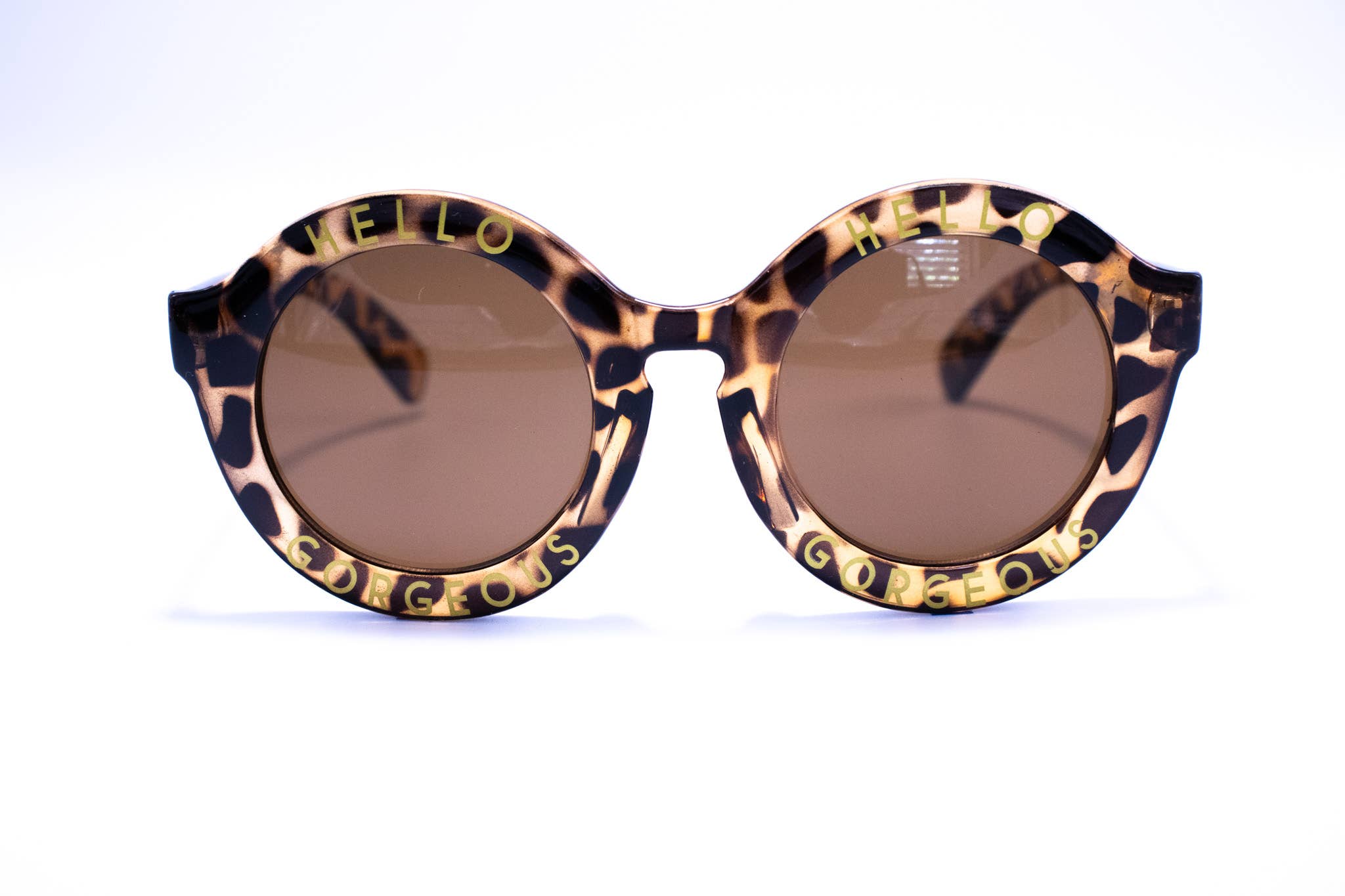 -OVERSIZED ROUND “RETROCHIC” TORTOISE FRAMES -FEATURING “HELLO GORGEOUS” PHRASE IN GOLD -PERFECT FOR MAKING A GRAND ENTRANCE -COMES WITH BLACK SCREEN PRINTED LOGO MICROFIBER SUNGLASSES CASE