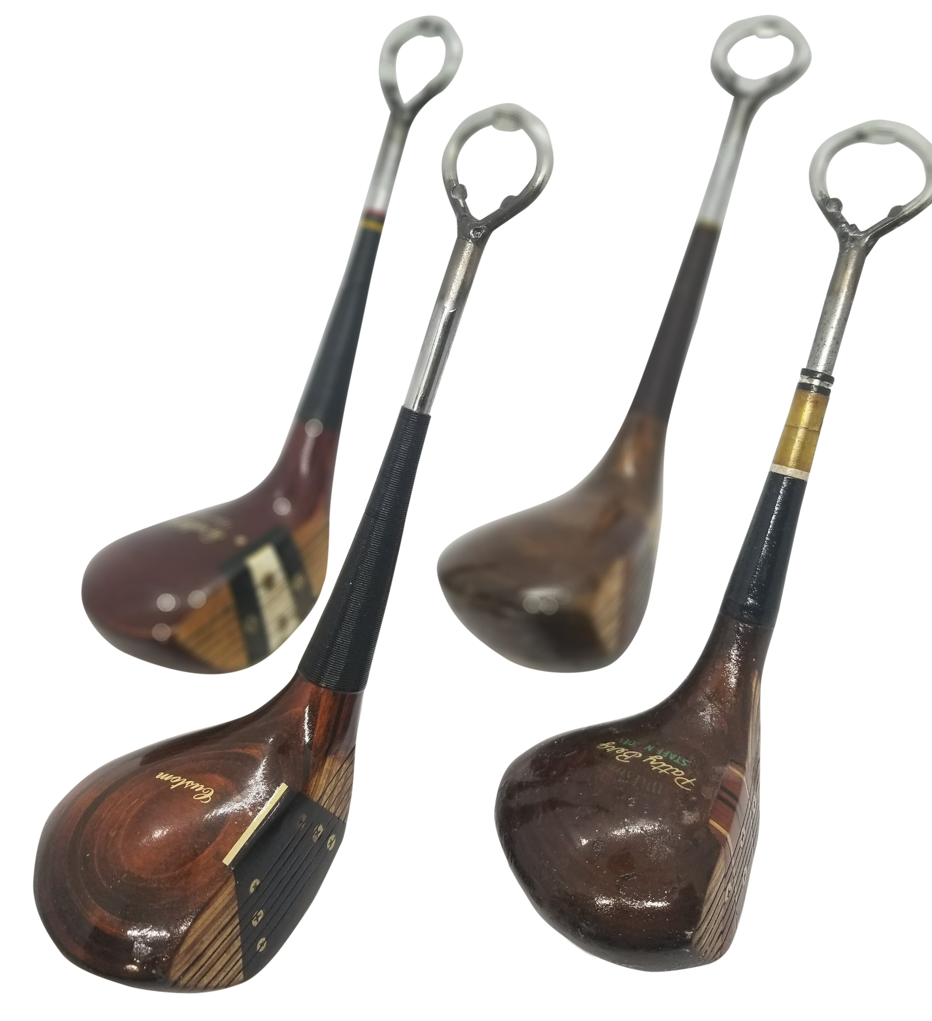 Repurposed and recycled vintage wood driver golf club - generally 50 years or older. We rescue these from thrift stores and estate sales, clean them up, chop off the shaft and weld a bottle opener onto the club. Makes a great gift for any golfer.