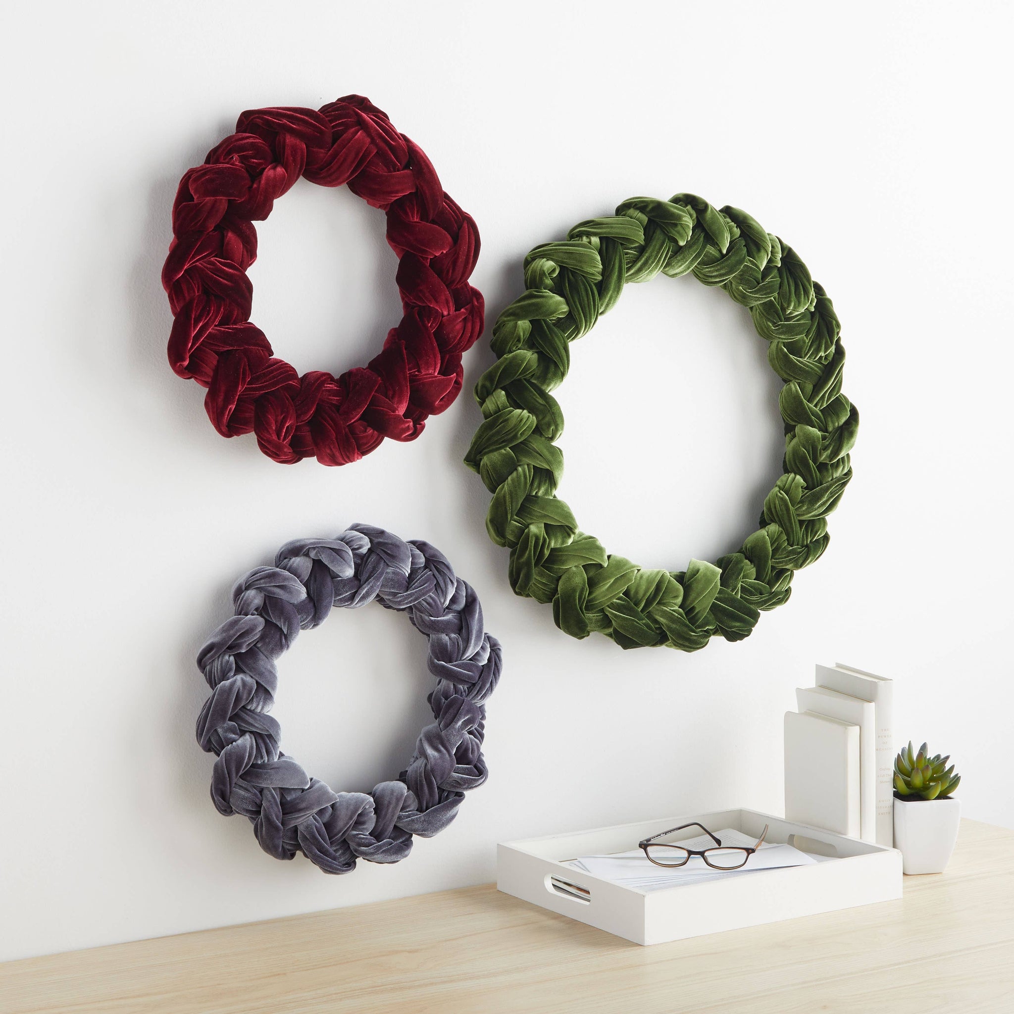 Woven Velvet Wreaths Entry Wall, Door Accent, Gift for : Small Emerald